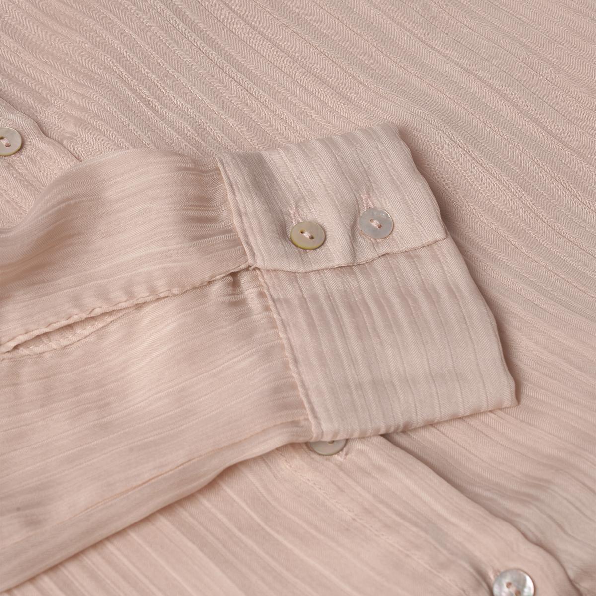 این شومیز زنانه از پارچه پلیاستر سبک با بافت ریز راهراه عمودی تولید شده که ضمن ایجاد ظاهری ظریف و کشیدهتر، تنفسپذیری مناسبی نیز دارد. پارچه کمی حالت نیمهشفاف داشته و برای استفاده در فصول معتدل بسیار ایدهآل است. کیفیت دوخت و متریال به حفظ فرم لباس در استفاده طولانیمدت کمک میکند.