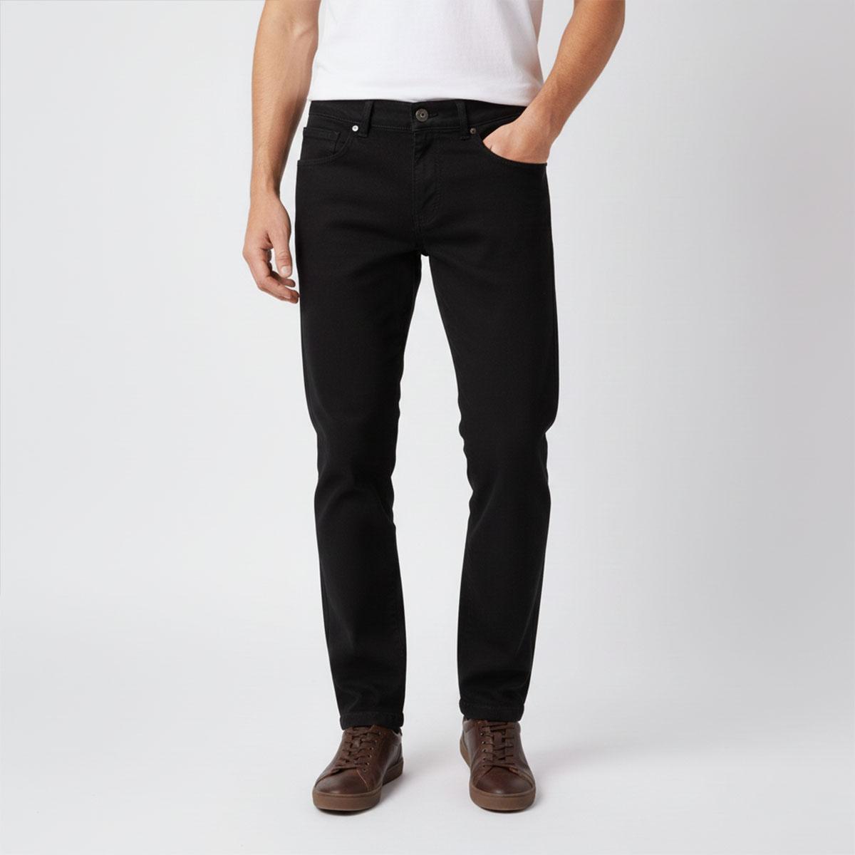 رنگ مشکی ساده و طراحی مینیمال، این شلوار جین مردانه را به گزینه ای انعطاف پذیر برای ست شدن با تی شرت، پیراهن، هودی و کفش های اسپرت یا روزمره تبدیل کرده و آن را برای فصول مختلف سال مناسب می سازد.